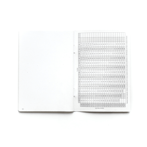 The Analogbook 135 edition is specifically designed for the 35mm film shooters out there and allow you to record every important detail of an individual shot or series on 35mm film such as exposure time, aperture, film type and more. This notebook contains 64 numbered pages and records 15 rolls of film. The interior covers also feature valuable tips, charts, and tables, with several spaces where you can add your own. For free notes each notebook contains additional blank pages where you can add extra notes, drawings, diagrams, and more at your liking