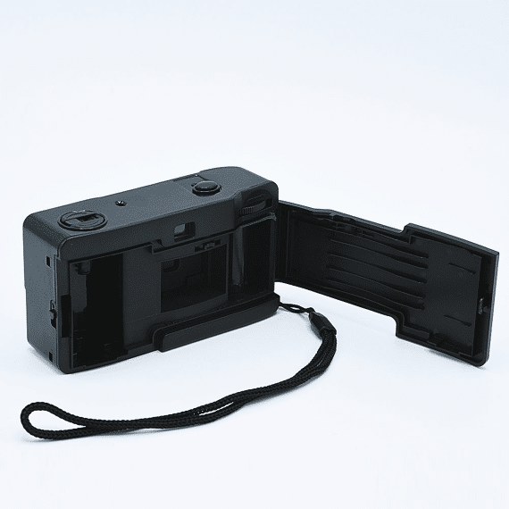 The camera comes with two 35mm black-and-white film rolls (36 exposures), being Kentmere 400 that are packed separately. It is therefore perfectly possible to use the camera immediately with another 35mm film of your choice. In addition, the battery is replaceable, as the flash is driven by a standard AAA battery that is also included in the package. To make it easy to take the camera with you, Harman has also provided a wrist strap.