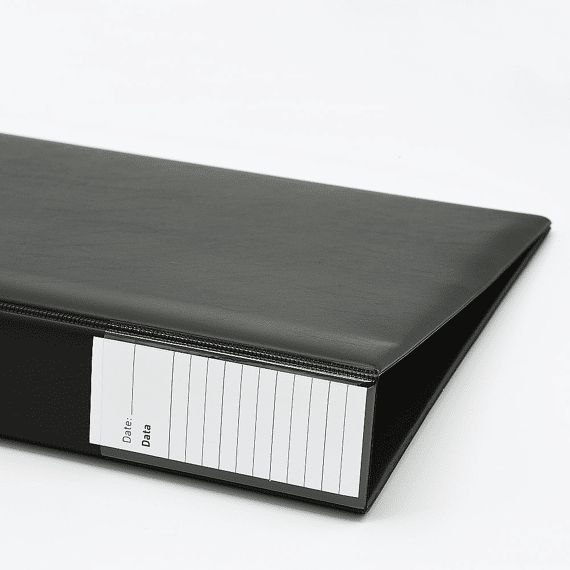 The backside of the binder has a writable label with date indication and a possible description of the contents.