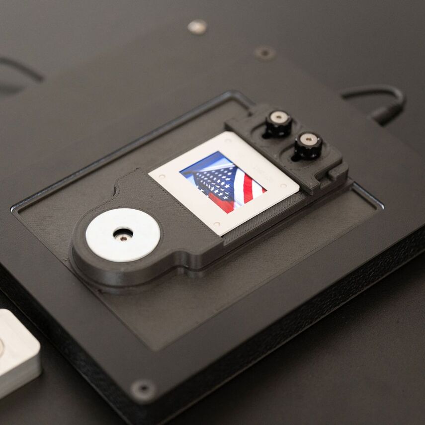 - Adjustable precision locking screws allow for wider 35mm mounted slide to be easily and quickly scanned
