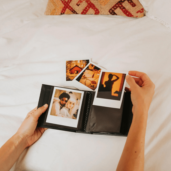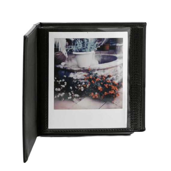 Pick your favorite shots and curate your own small Polaroid album. Holding up to 40 Polaroid photographs, this small black photo album is compatible with all original square format film (i-Type, 600, SX-70). This black version of the album is PU laminated with greyboard.