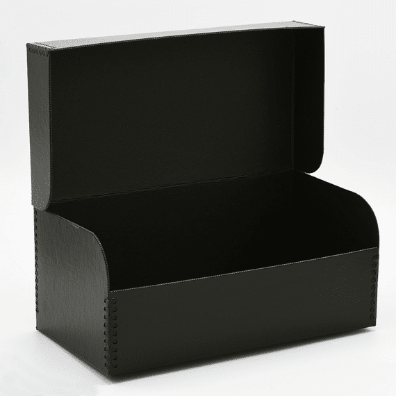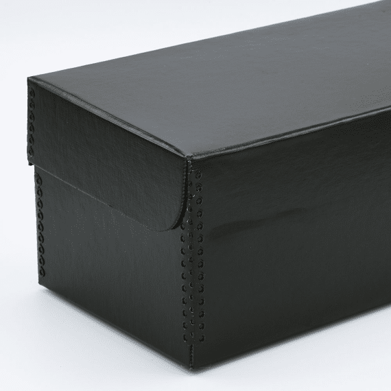 The Print File FlipTop Negative Strip Storage Box is a black linen acid-free and lignin-free storage box sized to fit the Print File Negative File Folders forĀ 35mm and 120 film.
