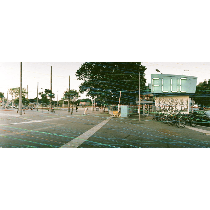 Photographs taken on Rasp film include colored lines, which either run horizontally (when shooting landscape format) or vertically (when shooting portrait format). The lines are connected through the frames and will make it possible to shoot great panoramas.