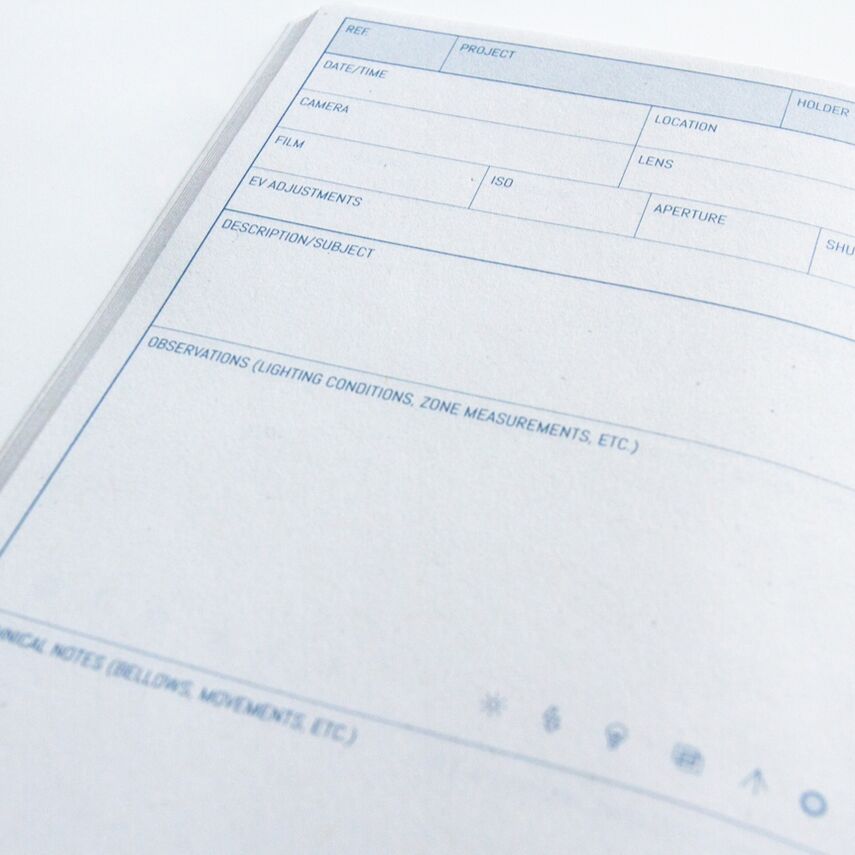 Conçu spécialement pour les shooters grand format parmi nous, Analogbook Large Format vous permet de capturer chaque détail important d'un plan ou d'une série sur un film plan, comme le temps d'exposition, l'ouverture, le type de film et plus encore. Ce carnet contient 64 pages numérotées et permet d'enregistrer 60 films plans. La couverture intérieure contient également de précieux conseils, graphiques et tableaux, avec plusieurs espaces où vous pouvez également prendre vos propres notes. Pour les notes gratuites, chaque carnet contient également un nombre supplémentaire de pages vierges où vous pouvez ajouter des notes supplémentaires, des dessins, des diagrammes et autres à votre guise.