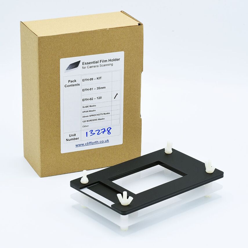 L'Essential Film Holder (EFH) est une solution simple, efficace et abordable pour maintenir les bandes de film au-dessus d'une boîte à lumière de manière parfaitement plate et alignée avec votre appareil photo numérique. Il est considéré par beaucoup comme la meilleure solution en termes de prix et de qualité pour numériser des films avec un appareil photo numérique (également appelé camera scanning). Il maintient les négatifs de 35mm et 120 à plat, ce qui permet d'obtenir des fichiers numériques (raw) de haute qualité, sans distorsion. Pour convertir les négatifs numérisés, nous vous conseillons d'utiliser le logiciel Negative Lab Pro.