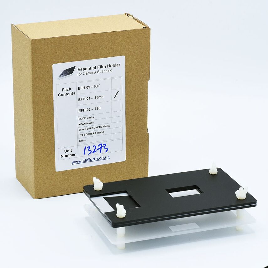 L'Essential Film Holder (EFH) est une solution simple, efficace et abordable pour maintenir les bandes de film au-dessus d'une boîte à lumière de manière parfaitement plate et alignée avec votre appareil photo numérique. Il est considéré par beaucoup comme la meilleure solution en termes de prix et de qualité pour numériser des films avec un appareil photo numérique (également appelé camera scanning). Il maintient les négatifs de 35mm et 120 à plat, ce qui permet d'obtenir des fichiers numériques (raw) de haute qualité, sans distorsion. Pour convertir les négatifs numérisés, nous vous conseillons d'utiliser le logiciel Negative Lab Pro.