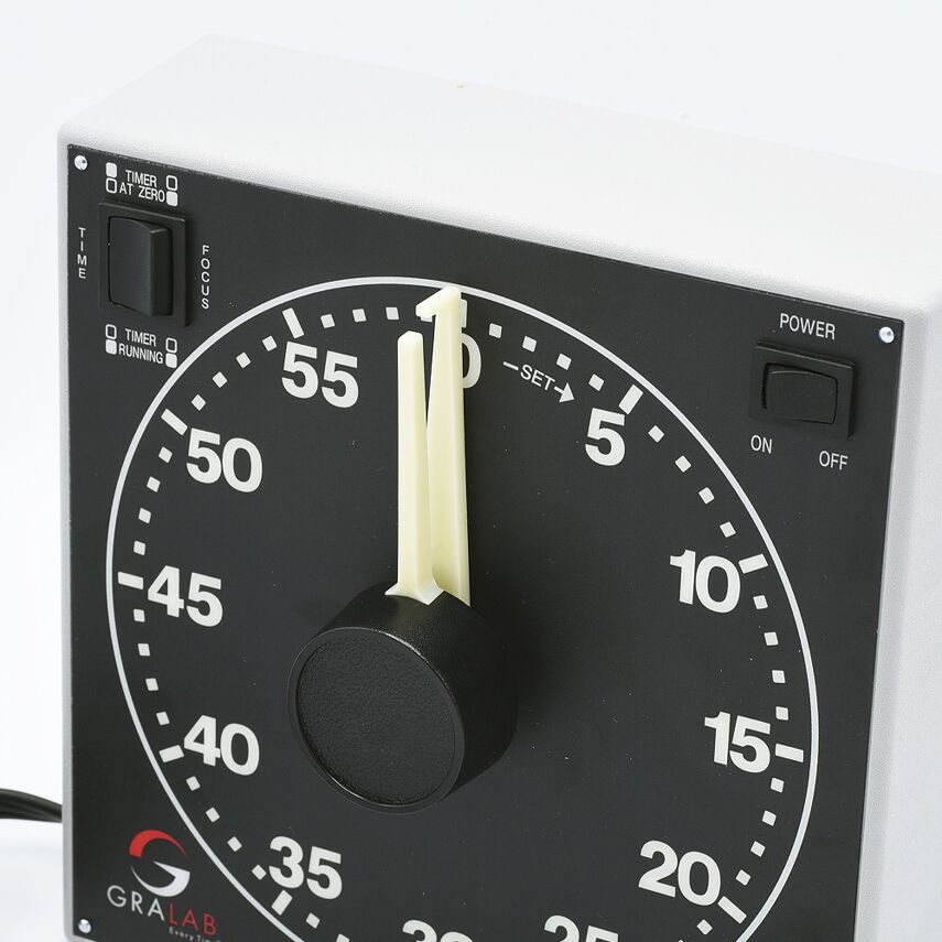 Le chronomètre du modèle 300 offre une plage de temps de 60 minutes qui peut être réglée en minutes pour le développement et en secondes pour le contrôle de l'agrandisseur. Deux aiguilles permettent un réglage rapide en secondes, minutes ou combinaisons de secondes et minutes. Les minutes et les secondes peuvent être facilement lues à travers la pièce dans l'obscurité totale, ce qui fait de le chronomètre du modèle 300 un outil idéal pour le traitement des films et du papier, en particulier pour le chronométrage précis requis par le traitement des couleurs.