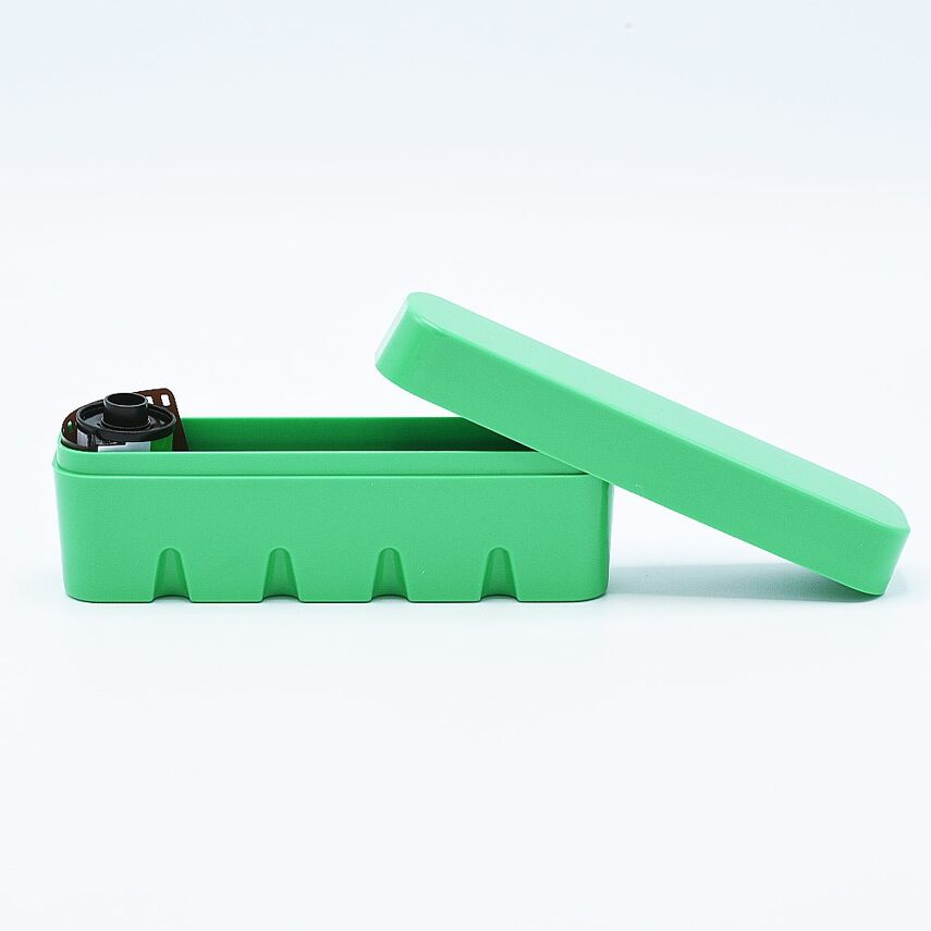 Le seul et unique JCH Film Case en plastique robuste pouvant contenir cinq films 35mm. La boîte est étanche à la lumière et est munie d'un couvercle solide. Elle se compose d'une base avec cinq compartiments qui contiennent chacun un rouleau de film 35mm. Idéal pour emmener vos films partout organisés et protégés.