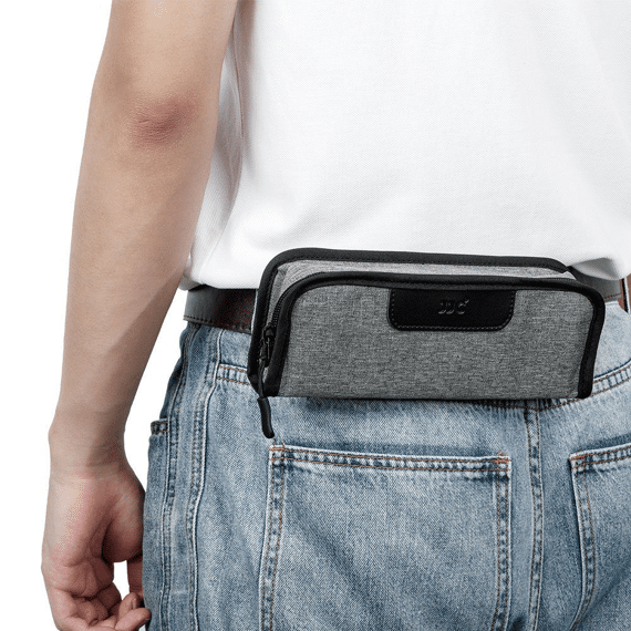 Transport facile et sûr : la boucle de ceinture à l'arrière de la pochette permet de la fixer à votre ceinture.
