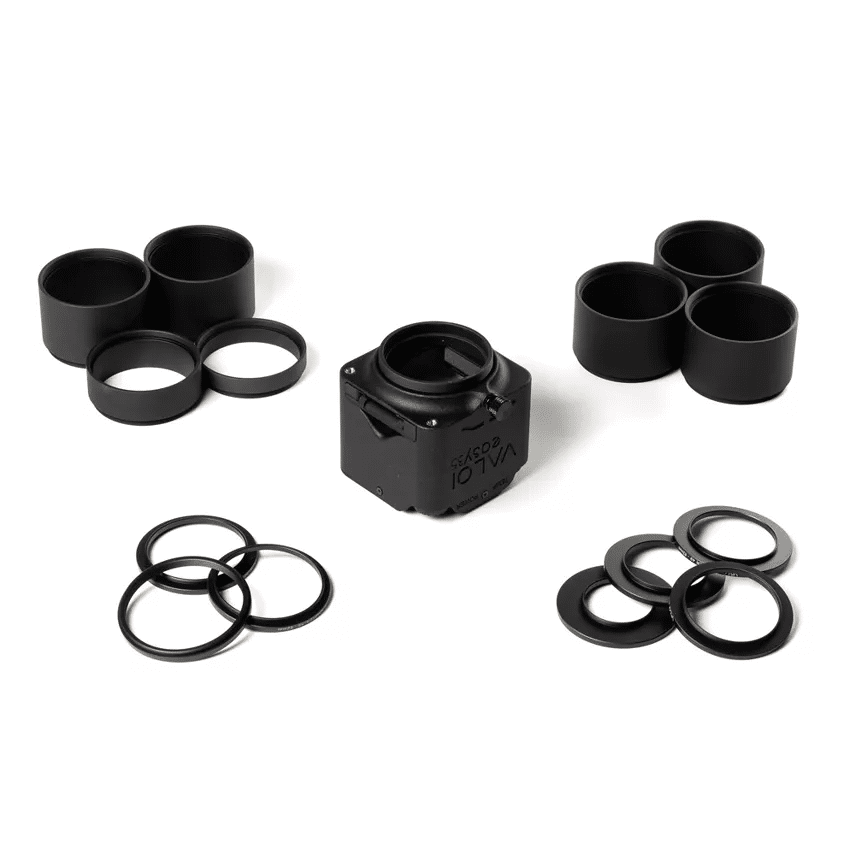 - Adaptateurs de filetage de filtre Valoi : 39mm, 46mm, 49mm, 52mm, 55mm, 58mm, 67mm (les adaptateurs de filtre ne sont pas nécessaires pour les objectifs avec un filetage de 62mm, car c'est la taille native du filetage de l'easy35).