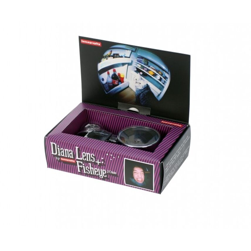 Wordt geleverd met Fisheye zoeker en plastic montagemateriaal zodat wat je ziet gelijk is aan wat je schiet! Hij past op alle Lomography Diana+ en Diana F+ camera's. De Diana F+ 20mm Fisheye lens heeft het effect van een 38mm groethoeklens als deze gebruikt wordt op een 35mm SLR camera. Op een APS-C sensor is het effect gelijk aan een 60mm lens.