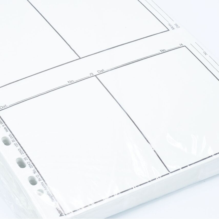 Deze negatiefbladen zijn geschikt voor het bewaren van sheet film. Elk blad houdt vier negatieven formaat 9x12cm. Hou er rekening mee dat de bladen breder zijn dan een standaard A4-blad en een gewone A4-ringmap dus niet geschikt is voor het optimaal bewaren van deze negatiefbladen. We raden daarom aan de negatiefbladen steeds te gebruiken in combinatie met een geschikte ringmap zoals die van Kenro.