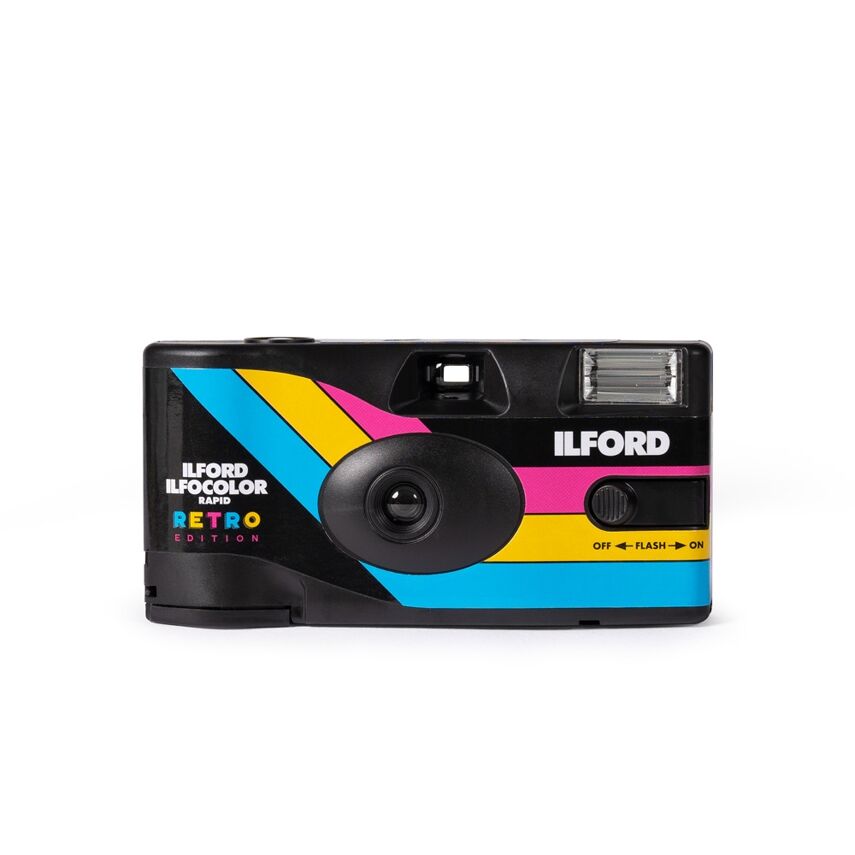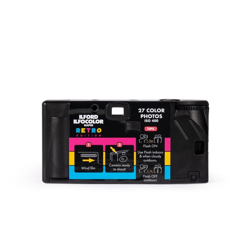 De Ilfocolor Rapid Retro Wegwerpcamera is een eenvoudig te gebruiken 35mm filmcamera voor eenmalig gebruik geladen met een kleurenfilm goed voor 27 foto's. De camera heeft een leuk retro design met een knipoog naar de Ilfocolor kleurenfilms die Ilford jaren gelden nog op de markt gebracht heeft.