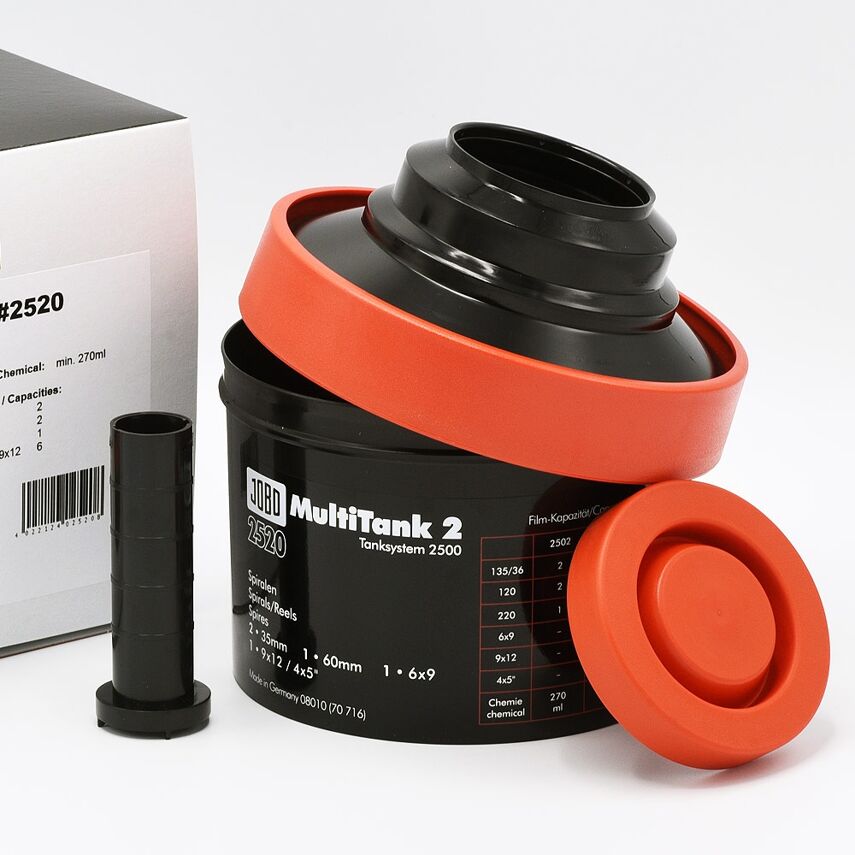 De Jobo 2520 Multi Tank 2 film ontwikkeltank is de populairste ontwikkeltank uit de 2500-serie gezien het een van de beste oplossingen op de markt is voor het ontwikkelen van 4x5" vlakfilm. Daarnaast kan de tank uiteraard ook 35mm film en 120 rolfilm ontwikkelen.