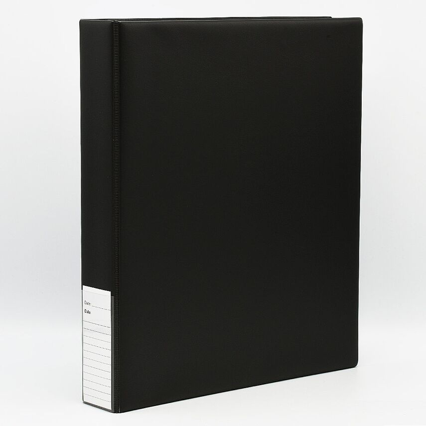 De rug van de map is voorzien van beschrijfbaar label met datumaanduiding en een eventuele beschrijving van de inhoud.