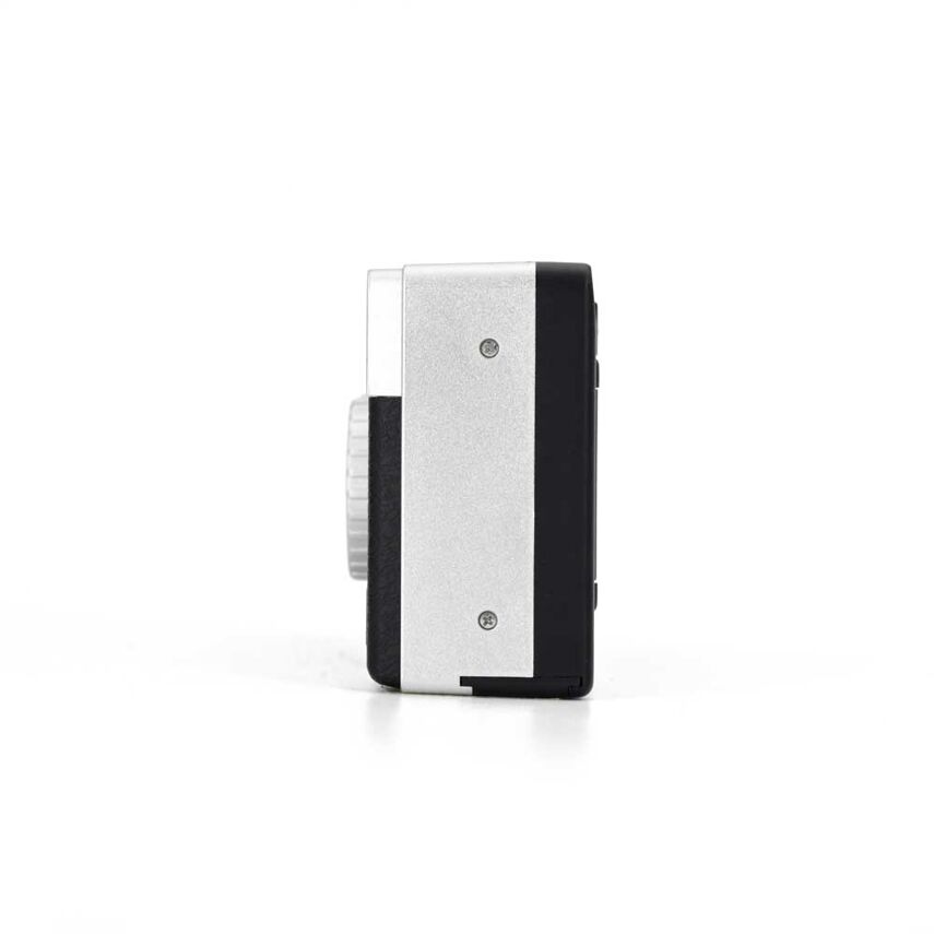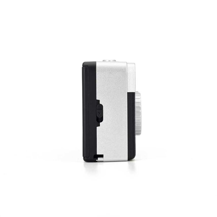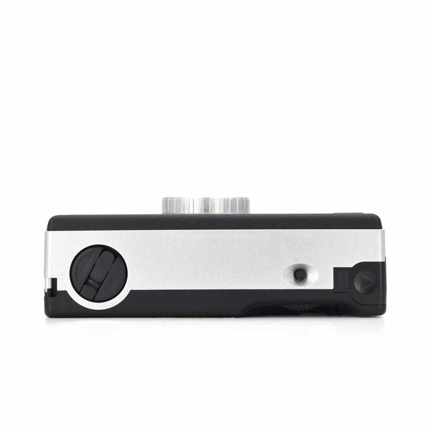 De camera is eenvoudig in gebruik, een echte point-and-shoot. De film wind je manueel door en terug met het draaiwieltje achteraan de camera.