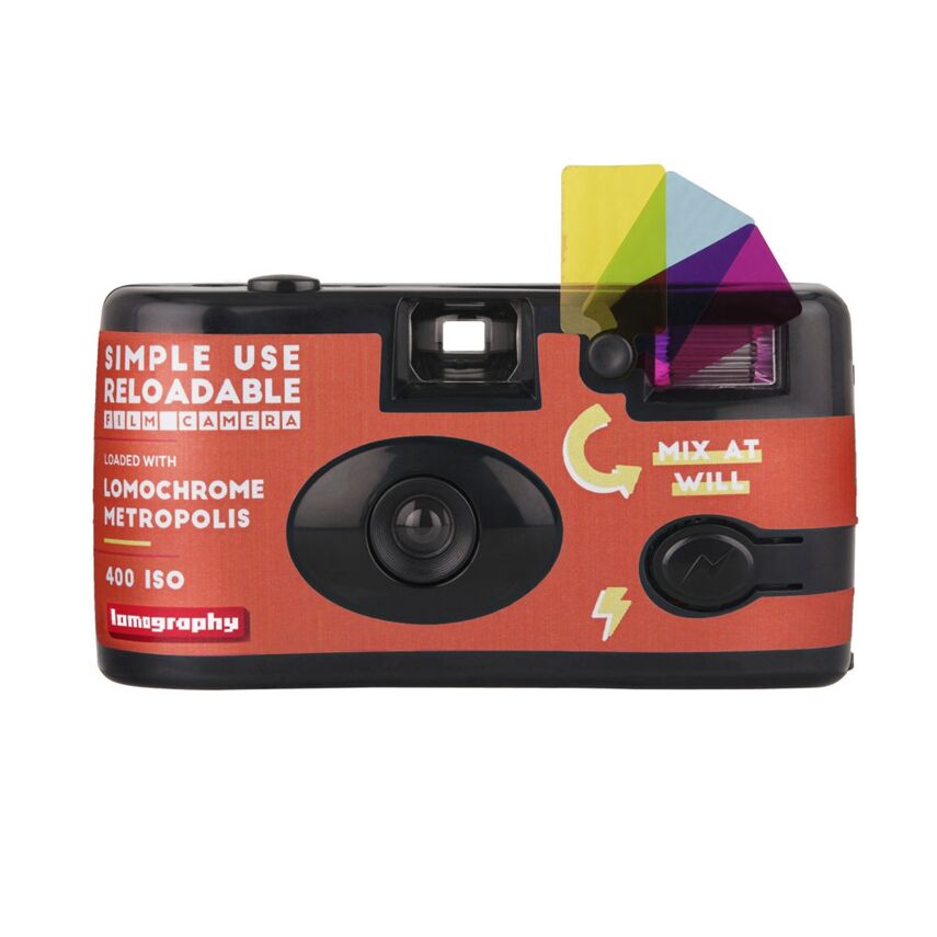 Makkelijk te gebruiken en voorgeladen met LomoChrome Metropolis ISO 100-400 Film, creëert deze camera sterke kleurverschuivingen en gedempte tonen #Nofilter.