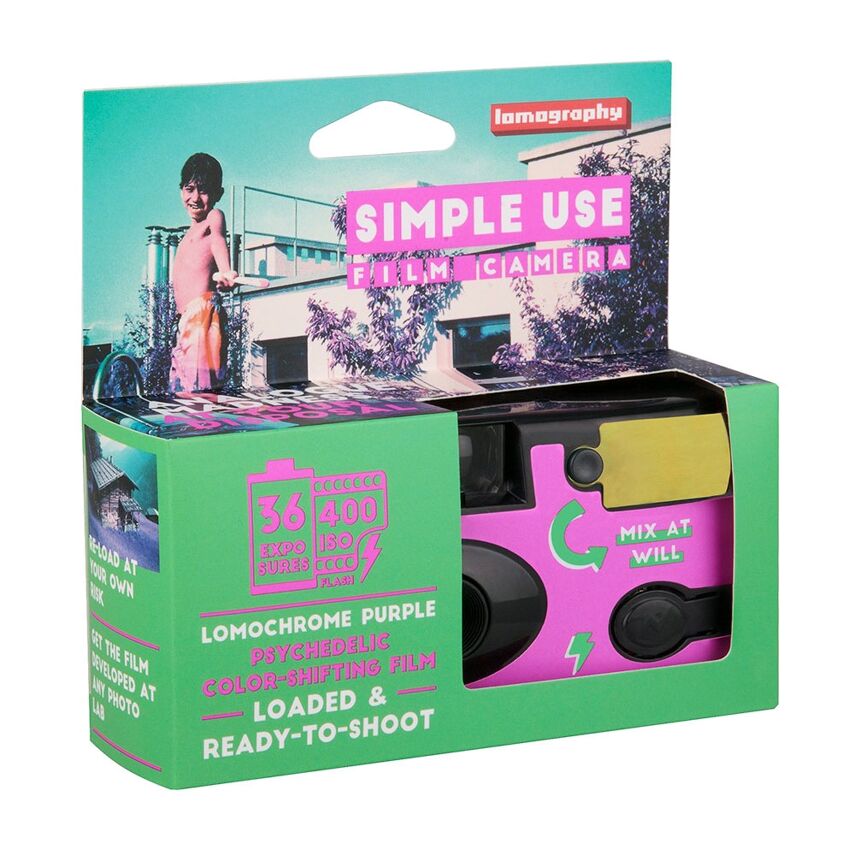 Met deze Simple Use Film Camera krijg je out-of-this-world kleuren in 36 prachtige frames. Voorgeladen met onze populaire kleurverschuivende film, LomoChrome Purple ISO 100-400, is deze superleuke wegwerpcamera er klaar voor om altijd en overal psychedelische foto's te schieten!