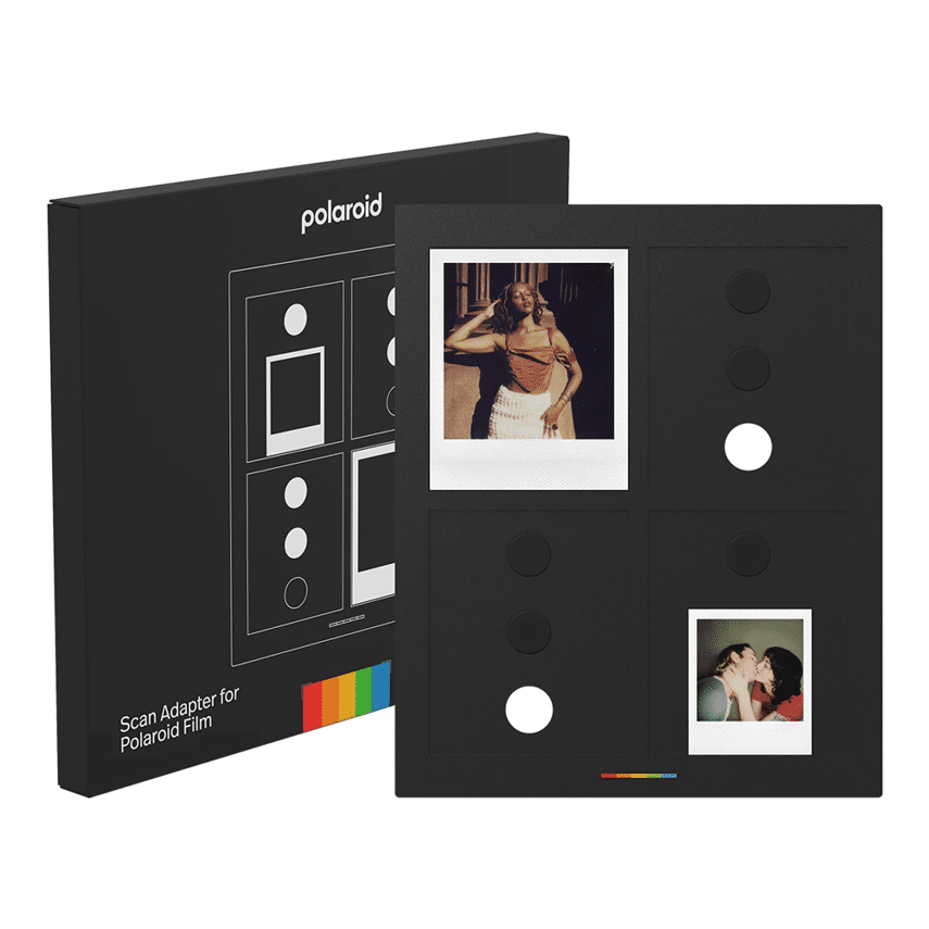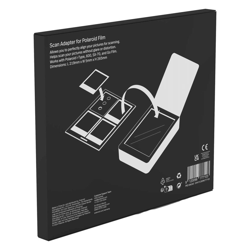 De Polaroid Film Scan Adapter is een innovatief accessoire dat kan worden gebruikt in combinatie met alle soorten flatbedscanners. Het elimineert de beruchte Newton-ringen (een cirkelvormig patroon dat ontstaat door de reflecties van twee oppervlakken bij het scannen van jouw Polaroidfoto's) en zorgt voor vervormingsvrije scans. De adapter heeft vier slots en laat je dus toe vier foto's tegelijkertijd de scannen.