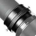 De spiraal wordt op de afstandsbuisjes geschroefd die bij de easy35 en easy120 worden geleverd. Plaats hem tussen uw lens en de buizen, stel in, vergrendel en begin gewoon met scannen.